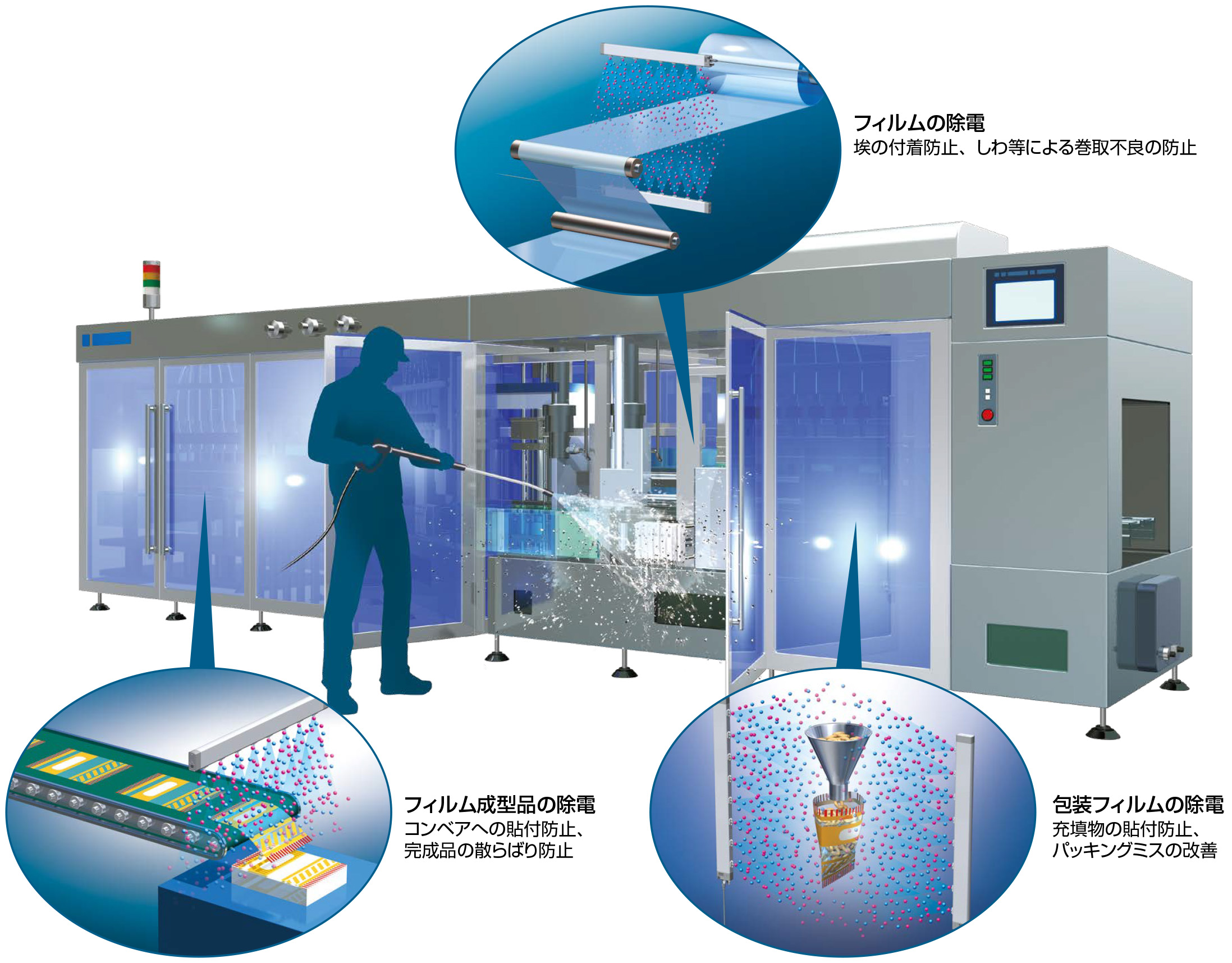 ■イオナイザ本体洗浄が可能:食品関連設備の定期洗浄